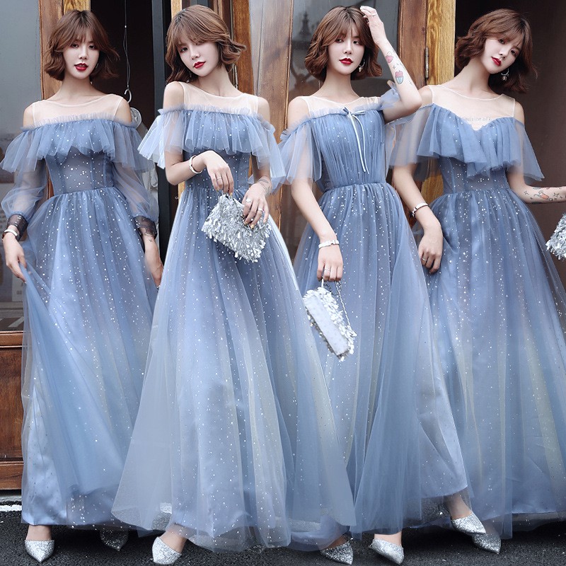 Women S Blue Starry Sky Off Shoulder Bridesmaid Long Dress Shopee Philippines